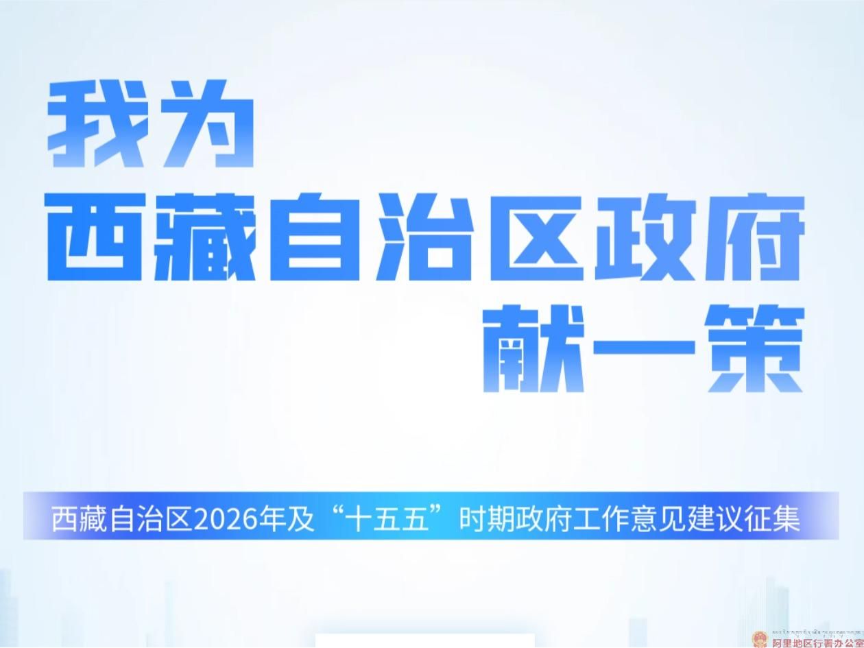 人民网拉萨10月15日电 (记者吴雨仁)为谋划好西藏自治区政府2026年及“十五五”时期各项工作,起草好2026年《政府工作报告》,西藏自治区政府联合人民网依托“领导留言板”开通政府工作征求意见栏,面向社会公开征集意见建议。本次意见征集时间为2025年10月15日—12月15日。征集内容围绕社会治理、基础设施、特色产业、乡村振兴、科技创新、民生实事、就业创业、教育文化、卫生健康、深化改革、对外开放、营商环境、灾害防治、生态环保、...